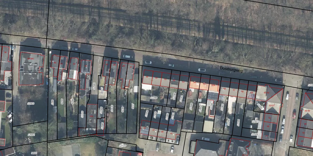Het perceel waarop Oostburgweg 50 staat heeft een oppervlakte van 426 m². Dit is een groot perceel. De perceeloppervlakte wordt geregistreerd door het Kadaster. Gedetailleerde informatie over de maten van dit perceel kunt u vinden in het rapport Kadastrale kaart met maatvoering van Oostburgweg 50.