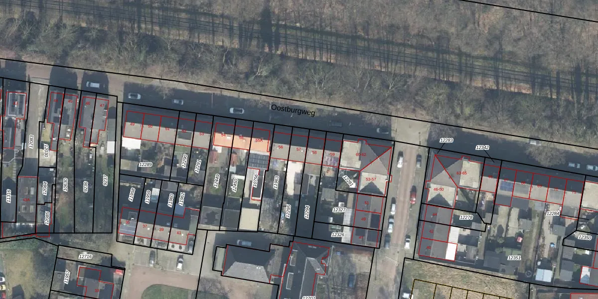 Oostburgweg 57 is gelegen op kadastraal perceel LNK00O12295. Deze kadastrale aanduiding is uniek en wordt gebruikt door het Kadaster om eigendomsrechten en andere zakelijke rechten vast te leggen. Het perceel maakt onderdeel uit van de kadastrale gemeente Lonneker.