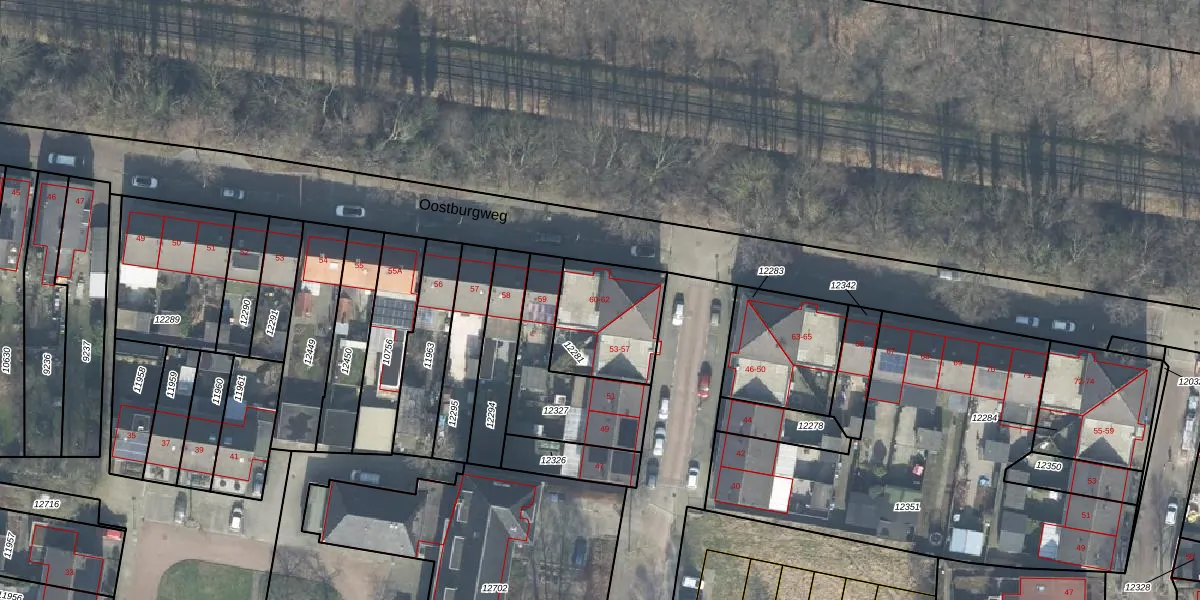 Het perceel waarop Oostburgweg 61 staat heeft een oppervlakte van 330 m². Dit is een groot perceel. De perceeloppervlakte wordt geregistreerd door het Kadaster. Gedetailleerde informatie over de maten van dit perceel kunt u vinden in het rapport Kadastrale kaart met maatvoering van Oostburgweg 61.