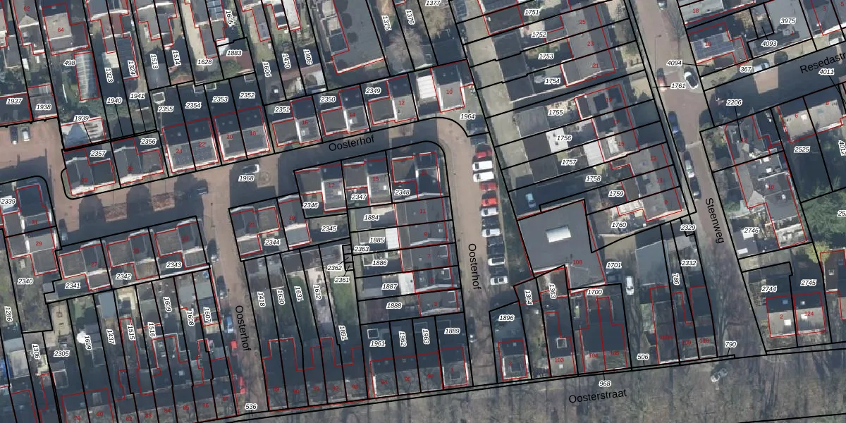 Gebruik de zoekbalk of klik op een perceel voor informatie over de adressen binnen dit perceel.