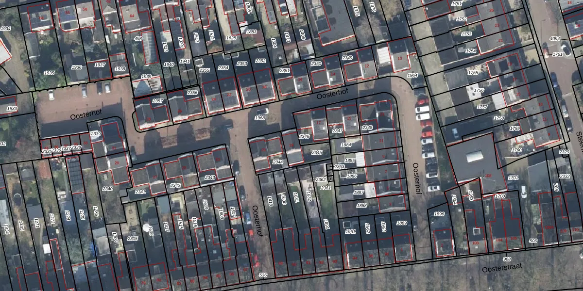 Oosterhof 19 is gelegen op kadastraal perceel ESD00M2345. Deze kadastrale aanduiding is uniek en wordt gebruikt door het Kadaster om eigendomsrechten en andere zakelijke rechten vast te leggen. Het perceel maakt onderdeel uit van de kadastrale gemeente Enschede.