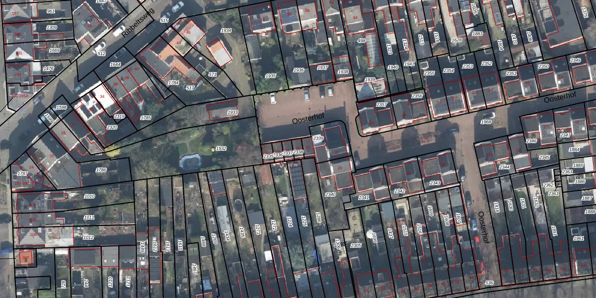 Gebruik de zoekbalk of klik op een perceel voor informatie over de adressen binnen dit perceel.