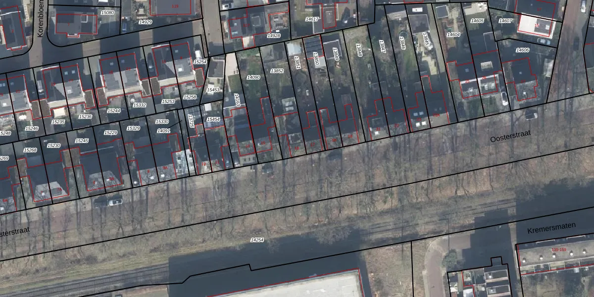 Het perceel waarop Oosterstraat 16 staat heeft een oppervlakte van 327 m². Dit is een groot perceel. De perceeloppervlakte wordt geregistreerd door het Kadaster. Gedetailleerde informatie over de maten van dit perceel kunt u vinden in het rapport Kadastrale kaart met maatvoering van Oosterstraat 16.