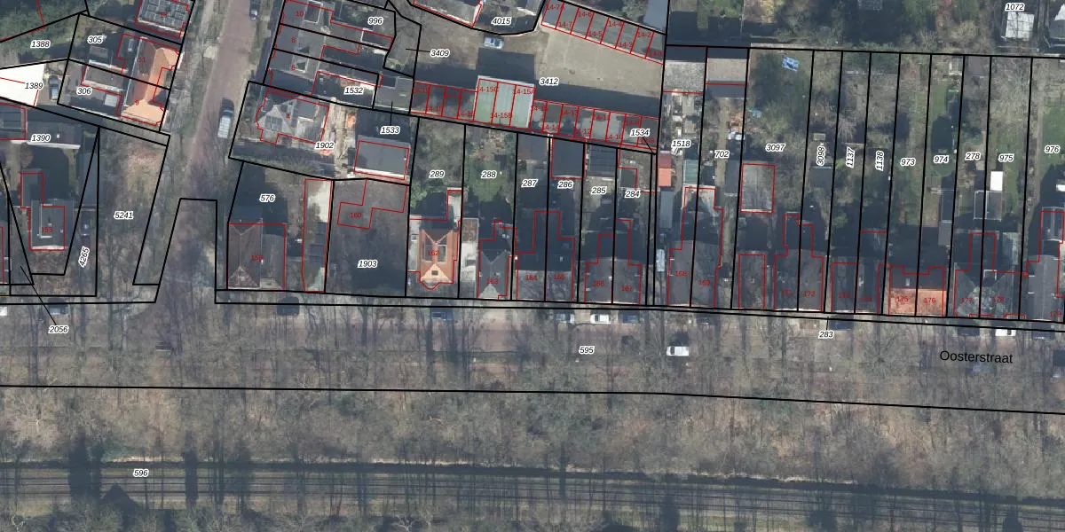 Het perceel waarop Oosterstraat 164 staat heeft een oppervlakte van 195 m². Dit is een middelgroot perceel. De perceeloppervlakte wordt geregistreerd door het Kadaster. Gedetailleerde informatie over de maten van dit perceel kunt u vinden in het rapport Kadastrale kaart met maatvoering van Oosterstraat 164.