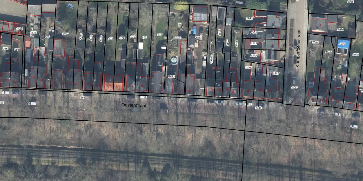 Het perceel waarop Oosterstraat 181 staat heeft een oppervlakte van 552 m². Dit is een groot perceel. De perceeloppervlakte wordt geregistreerd door het Kadaster. Gedetailleerde informatie over de maten van dit perceel kunt u vinden in het rapport Kadastrale kaart met maatvoering van Oosterstraat 181.
