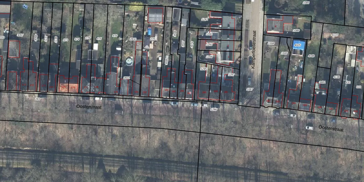 Het perceel waarop Oosterstraat 186 staat heeft een oppervlakte van 205 m². Dit is een middelgroot perceel. De perceeloppervlakte wordt geregistreerd door het Kadaster. Gedetailleerde informatie over de maten van dit perceel kunt u vinden in het rapport Kadastrale kaart met maatvoering van Oosterstraat 186.