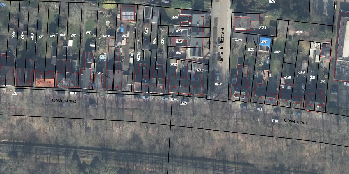Het perceel waarop Oosterstraat 188 staat heeft een oppervlakte van 164 m². Dit is een middelgroot perceel. De perceeloppervlakte wordt geregistreerd door het Kadaster. Gedetailleerde informatie over de maten van dit perceel kunt u vinden in het rapport Kadastrale kaart met maatvoering van Oosterstraat 188.