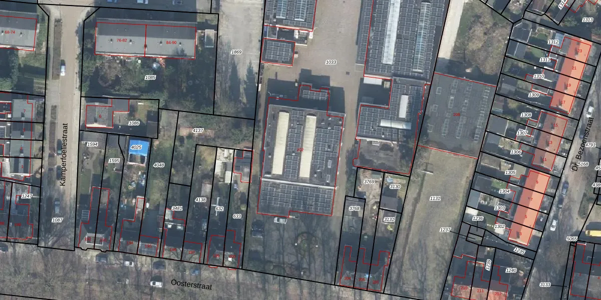 Het perceel waarop Oosterstraat 202 staat heeft een oppervlakte van 6637 m². Dit is een zeer groot perceel. De perceeloppervlakte wordt geregistreerd door het Kadaster. Gedetailleerde informatie over de maten van dit perceel kunt u vinden in het rapport Kadastrale kaart met maatvoering van Oosterstraat 202.