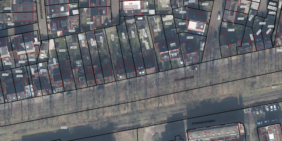 Het perceel waarop Oosterstraat 23 staat heeft een oppervlakte van 306 m². Dit is een groot perceel. De perceeloppervlakte wordt geregistreerd door het Kadaster. Gedetailleerde informatie over de maten van dit perceel kunt u vinden in het rapport Kadastrale kaart met maatvoering van Oosterstraat 23.
