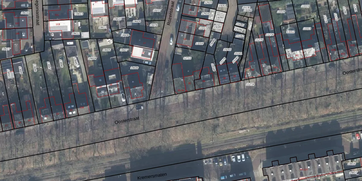 Het perceel waarop Oosterstraat 33 staat heeft een oppervlakte van 358 m². Dit is een groot perceel. De perceeloppervlakte wordt geregistreerd door het Kadaster. Gedetailleerde informatie over de maten van dit perceel kunt u vinden in het rapport Kadastrale kaart met maatvoering van Oosterstraat 33.
