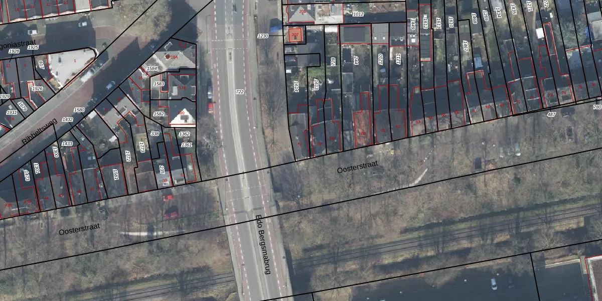 Het perceel waarop Oosterstraat 57 staat heeft een oppervlakte van 257 m². Dit is een middelgroot perceel. De perceeloppervlakte wordt geregistreerd door het Kadaster. Gedetailleerde informatie over de maten van dit perceel kunt u vinden in het rapport Kadastrale kaart met maatvoering van Oosterstraat 57.