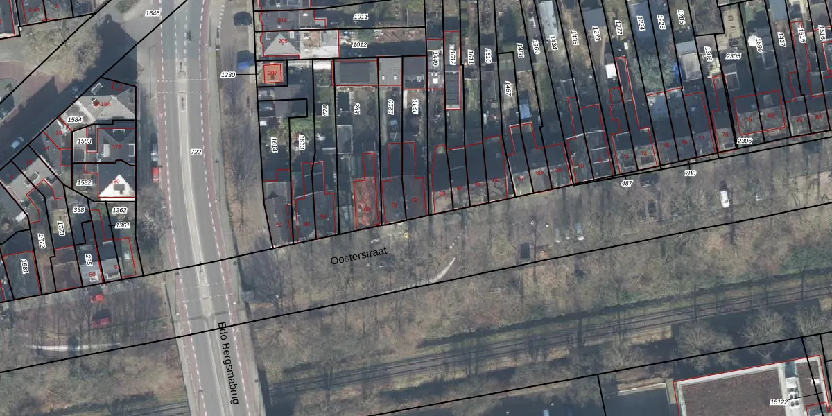 Het perceel waarop Oosterstraat 62 staat heeft een oppervlakte van 233 m². Dit is een middelgroot perceel. De perceeloppervlakte wordt geregistreerd door het Kadaster. Gedetailleerde informatie over de maten van dit perceel kunt u vinden in het rapport Kadastrale kaart met maatvoering van Oosterstraat 62.