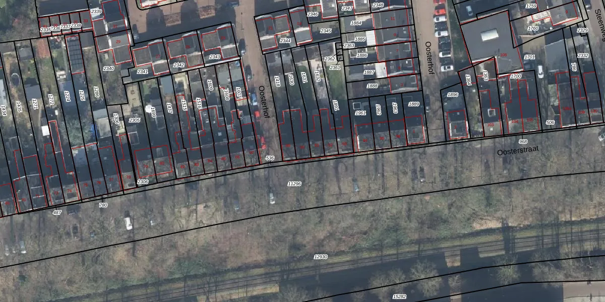 Het perceel waarop Oosterstraat 90 staat heeft een oppervlakte van 163 m². Dit is een middelgroot perceel. De perceeloppervlakte wordt geregistreerd door het Kadaster. Gedetailleerde informatie over de maten van dit perceel kunt u vinden in het rapport Kadastrale kaart met maatvoering van Oosterstraat 90.