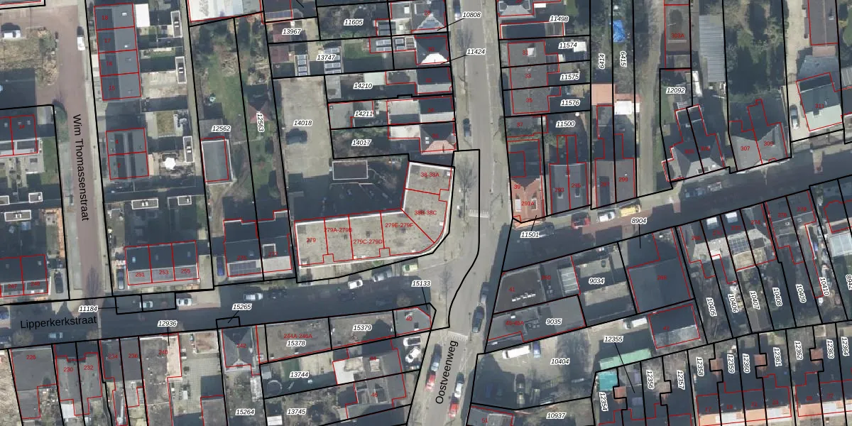 Oostveenweg 38-C is gelegen op kadastraal perceel ESD00D14018. Deze kadastrale aanduiding is uniek en wordt gebruikt door het Kadaster om eigendomsrechten en andere zakelijke rechten vast te leggen. Het perceel maakt onderdeel uit van de kadastrale gemeente Enschede.