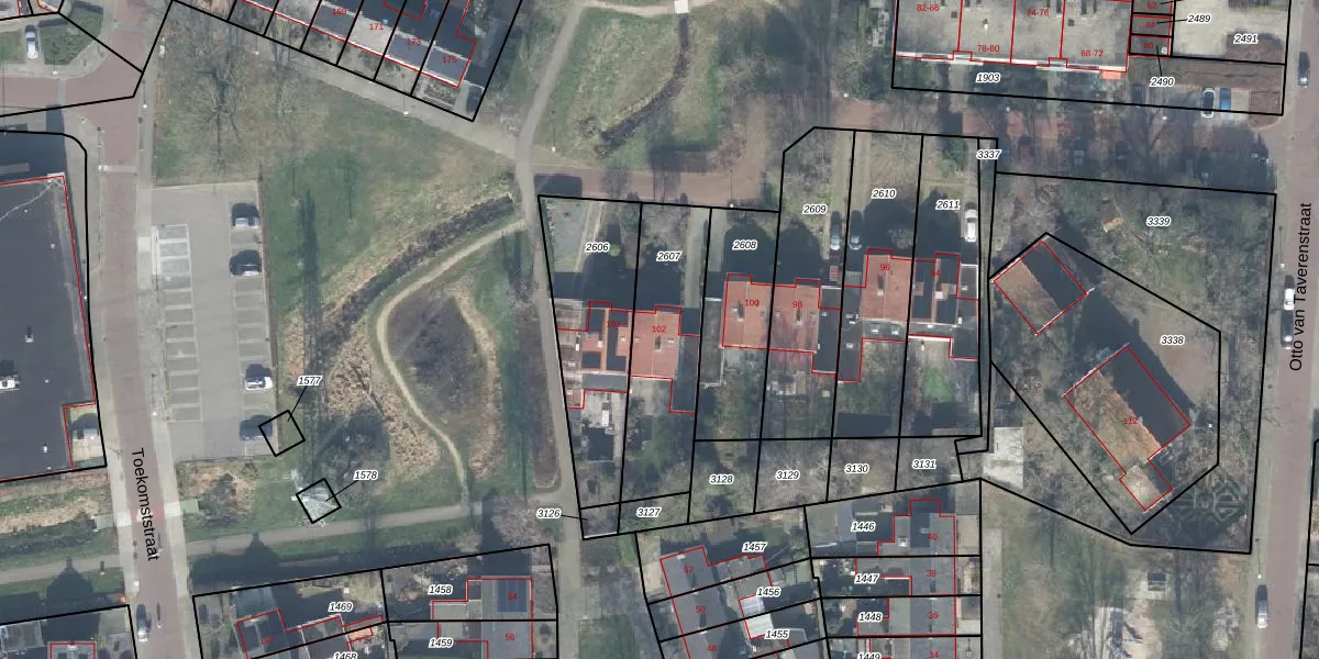 Het perceel waarop Otto van Taverenstraat 102 staat heeft een oppervlakte van 466 m². Dit is een groot perceel. De perceeloppervlakte wordt geregistreerd door het Kadaster. Gedetailleerde informatie over de maten van dit perceel kunt u vinden in het rapport Kadastrale kaart met maatvoering van Otto van Taverenstraat 102.