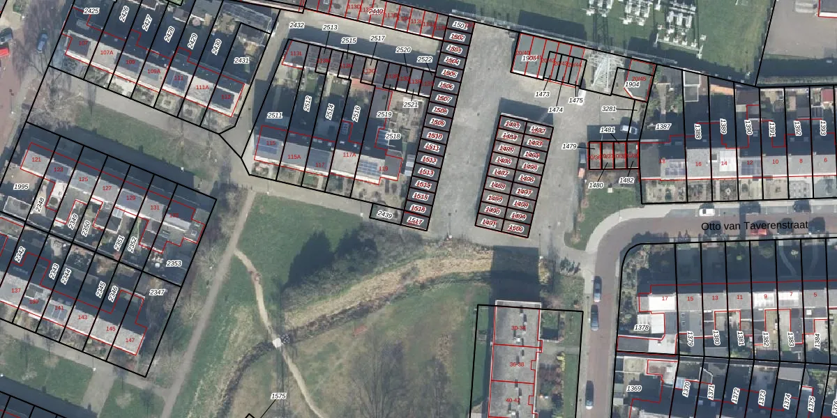 Het perceel waarop Otto van Taverenstraat 20-16 staat heeft een oppervlakte van 19 m². Dit is een klein perceel. De perceeloppervlakte wordt geregistreerd door het Kadaster. Gedetailleerde informatie over de maten van dit perceel kunt u vinden in het rapport Kadastrale kaart met maatvoering van Otto van Taverenstraat 20-16.