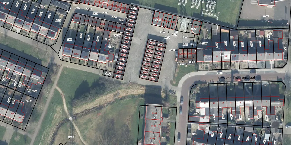 Het perceel waarop Otto van Taverenstraat 20-25 staat heeft een oppervlakte van 19 m². Dit is een klein perceel. De perceeloppervlakte wordt geregistreerd door het Kadaster. Gedetailleerde informatie over de maten van dit perceel kunt u vinden in het rapport Kadastrale kaart met maatvoering van Otto van Taverenstraat 20-25.