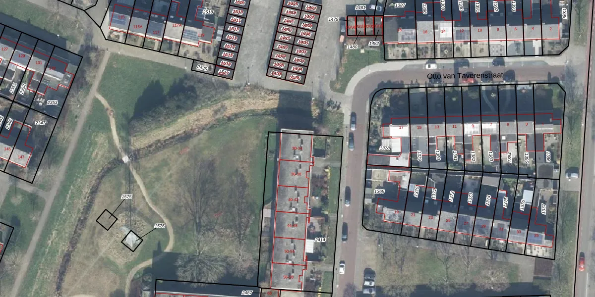 Het perceel waarop Otto van Taverenstraat 32 staat heeft een oppervlakte van 1321 m². Dit is een zeer groot perceel. De perceeloppervlakte wordt geregistreerd door het Kadaster. Gedetailleerde informatie over de maten van dit perceel kunt u vinden in het rapport Kadastrale kaart met maatvoering van Otto van Taverenstraat 32.