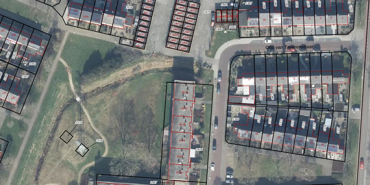 Het perceel waarop Otto van Taverenstraat 34 staat heeft een oppervlakte van 1321 m². Dit is een zeer groot perceel. De perceeloppervlakte wordt geregistreerd door het Kadaster. Gedetailleerde informatie over de maten van dit perceel kunt u vinden in het rapport Kadastrale kaart met maatvoering van Otto van Taverenstraat 34.