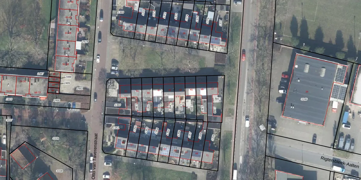 Otto van Taverenstraat 43 is gelegen op kadastraal perceel LNK00S1365. Deze kadastrale aanduiding is uniek en wordt gebruikt door het Kadaster om eigendomsrechten en andere zakelijke rechten vast te leggen. Het perceel maakt onderdeel uit van de kadastrale gemeente Lonneker.