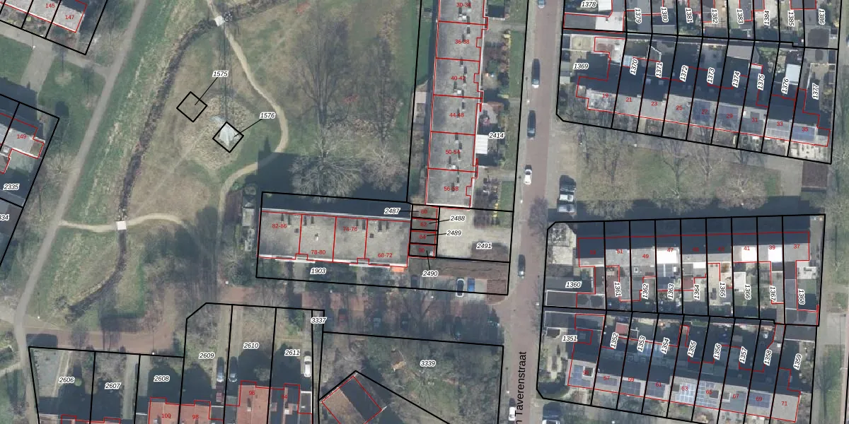 Het perceel waarop Otto van Taverenstraat 60 staat heeft een oppervlakte van 20 m². Dit is een klein perceel. De perceeloppervlakte wordt geregistreerd door het Kadaster. Gedetailleerde informatie over de maten van dit perceel kunt u vinden in het rapport Kadastrale kaart met maatvoering van Otto van Taverenstraat 60.