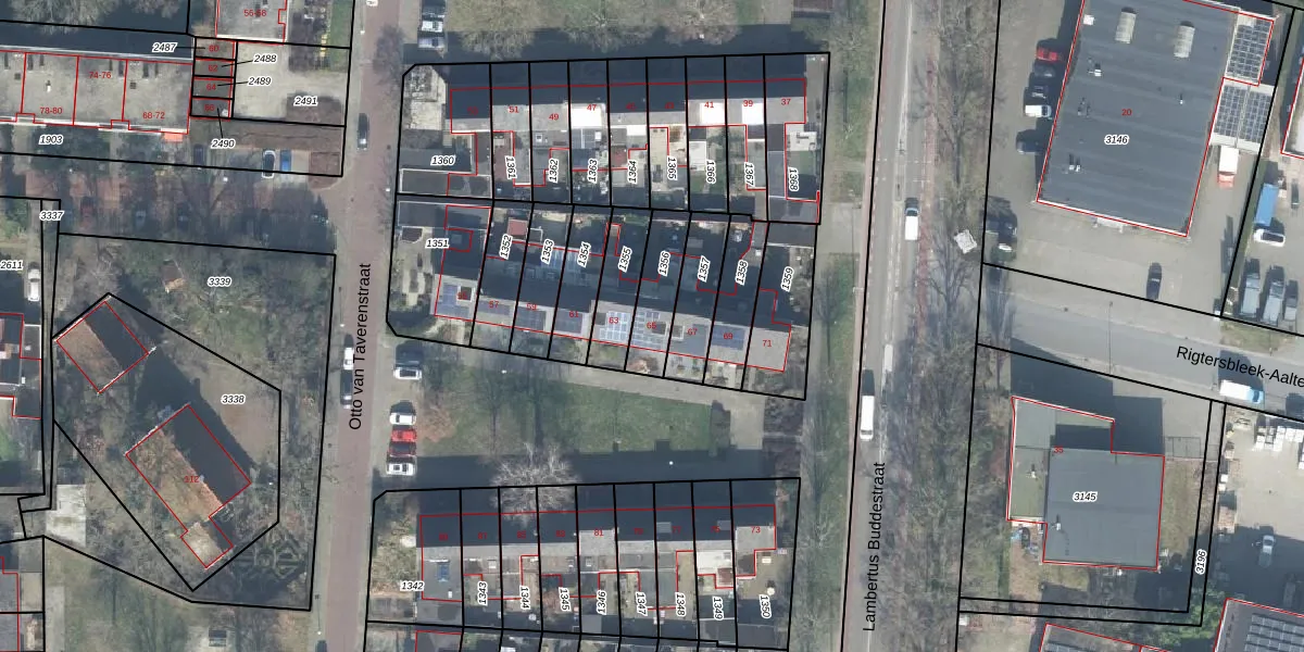 Otto van Taverenstraat 65 is gelegen op kadastraal perceel LNK00S1356. Deze kadastrale aanduiding is uniek en wordt gebruikt door het Kadaster om eigendomsrechten en andere zakelijke rechten vast te leggen. Het perceel maakt onderdeel uit van de kadastrale gemeente Lonneker.
