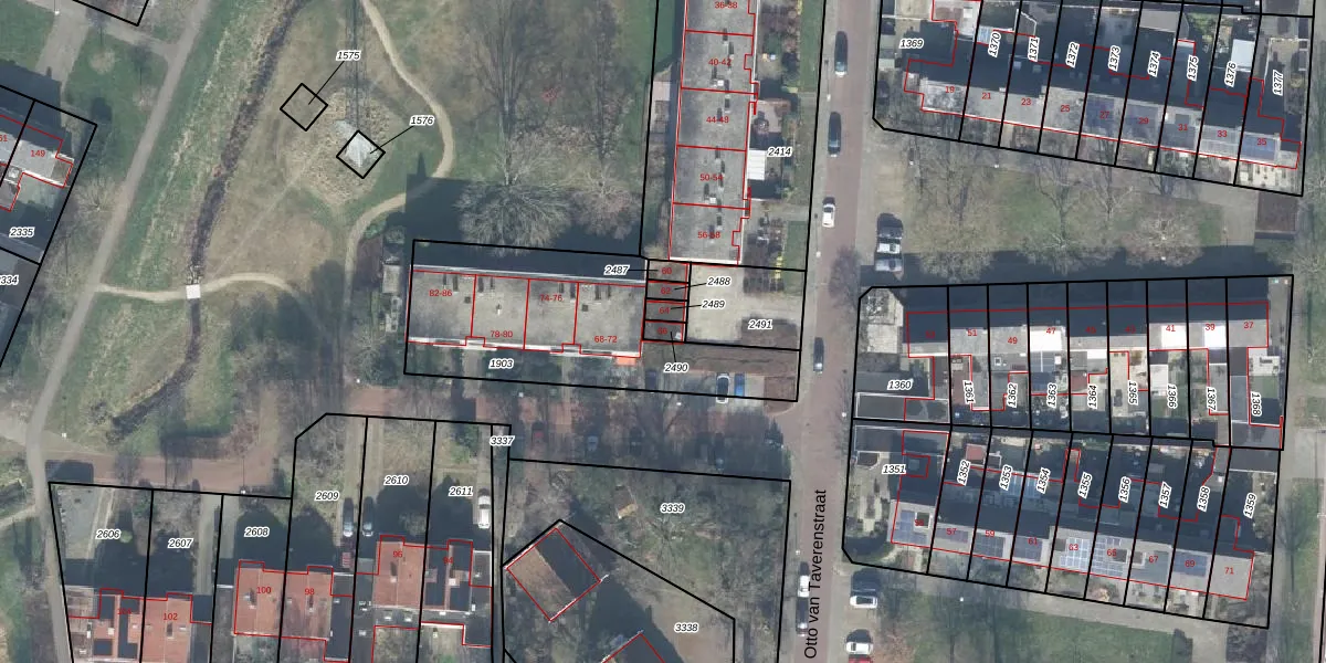 Het perceel waarop Otto van Taverenstraat 66 staat heeft een oppervlakte van 19 m². Dit is een klein perceel. De perceeloppervlakte wordt geregistreerd door het Kadaster. Gedetailleerde informatie over de maten van dit perceel kunt u vinden in het rapport Kadastrale kaart met maatvoering van Otto van Taverenstraat 66.