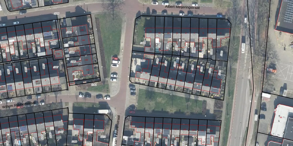 Het perceel waarop Otto van Taverenstraat 91 staat heeft een oppervlakte van 320 m². Dit is een groot perceel. De perceeloppervlakte wordt geregistreerd door het Kadaster. Gedetailleerde informatie over de maten van dit perceel kunt u vinden in het rapport Kadastrale kaart met maatvoering van Otto van Taverenstraat 91.