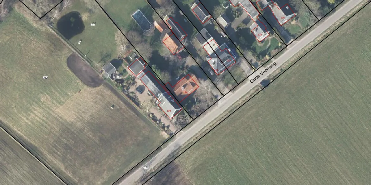Oude Veenweg 134 is gelegen op kadastraal perceel LNK00AK356. Deze kadastrale aanduiding is uniek en wordt gebruikt door het Kadaster om eigendomsrechten en andere zakelijke rechten vast te leggen. Het perceel maakt onderdeel uit van de kadastrale gemeente Lonneker.
