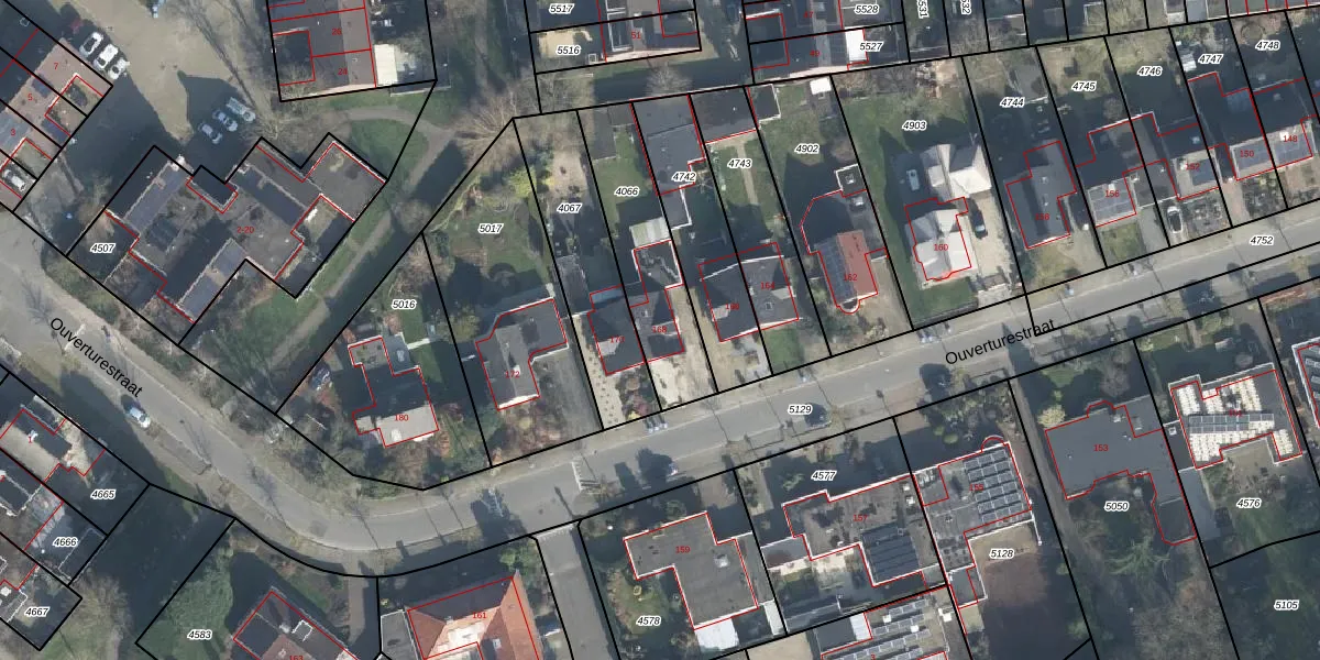 Het perceel waarop Ouverturestraat 168 staat heeft een oppervlakte van 417 m². Dit is een groot perceel. De perceeloppervlakte wordt geregistreerd door het Kadaster. Gedetailleerde informatie over de maten van dit perceel kunt u vinden in het rapport Kadastrale kaart met maatvoering van Ouverturestraat 168.