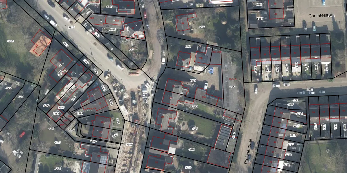 Het perceel waarop Ouverturestraat 25 staat heeft een oppervlakte van 665 m². Dit is een groot perceel. De perceeloppervlakte wordt geregistreerd door het Kadaster. Gedetailleerde informatie over de maten van dit perceel kunt u vinden in het rapport Kadastrale kaart met maatvoering van Ouverturestraat 25.