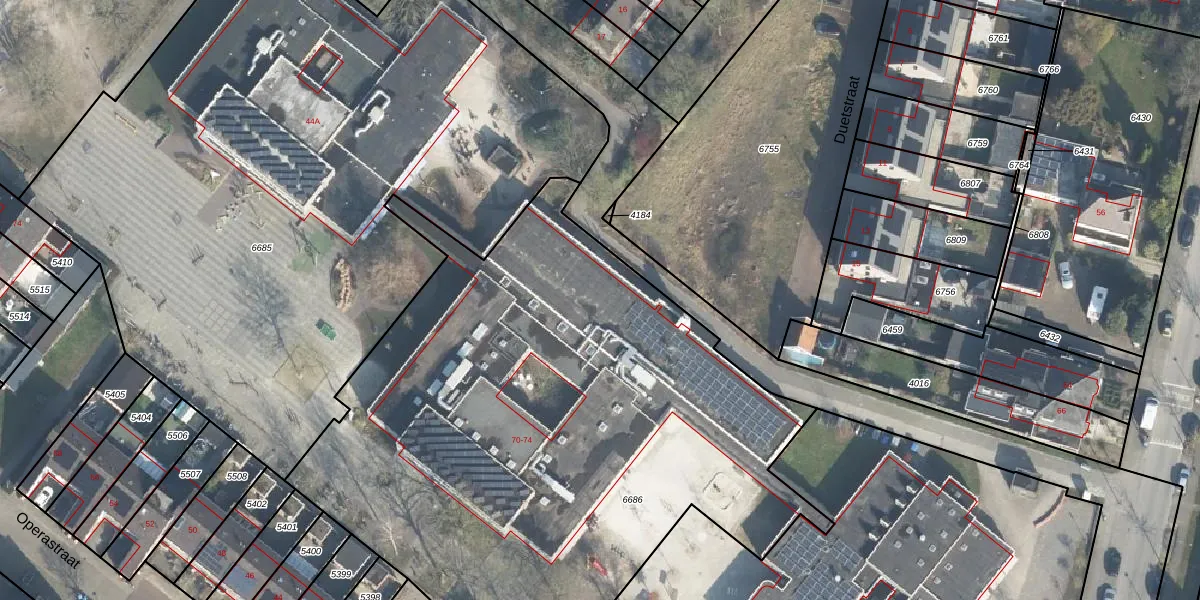 Het perceel waarop Ouverturestraat 72 staat heeft een oppervlakte van 3865 m². Dit is een zeer groot perceel. De perceeloppervlakte wordt geregistreerd door het Kadaster. Gedetailleerde informatie over de maten van dit perceel kunt u vinden in het rapport Kadastrale kaart met maatvoering van Ouverturestraat 72.