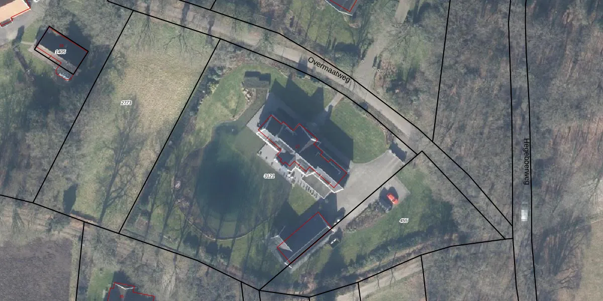 Het perceel waarop Overmaatweg 17 staat heeft een oppervlakte van 4501 m². Dit is een zeer groot perceel. De perceeloppervlakte wordt geregistreerd door het Kadaster. Gedetailleerde informatie over de maten van dit perceel kunt u vinden in het rapport Kadastrale kaart met maatvoering van Overmaatweg 17.