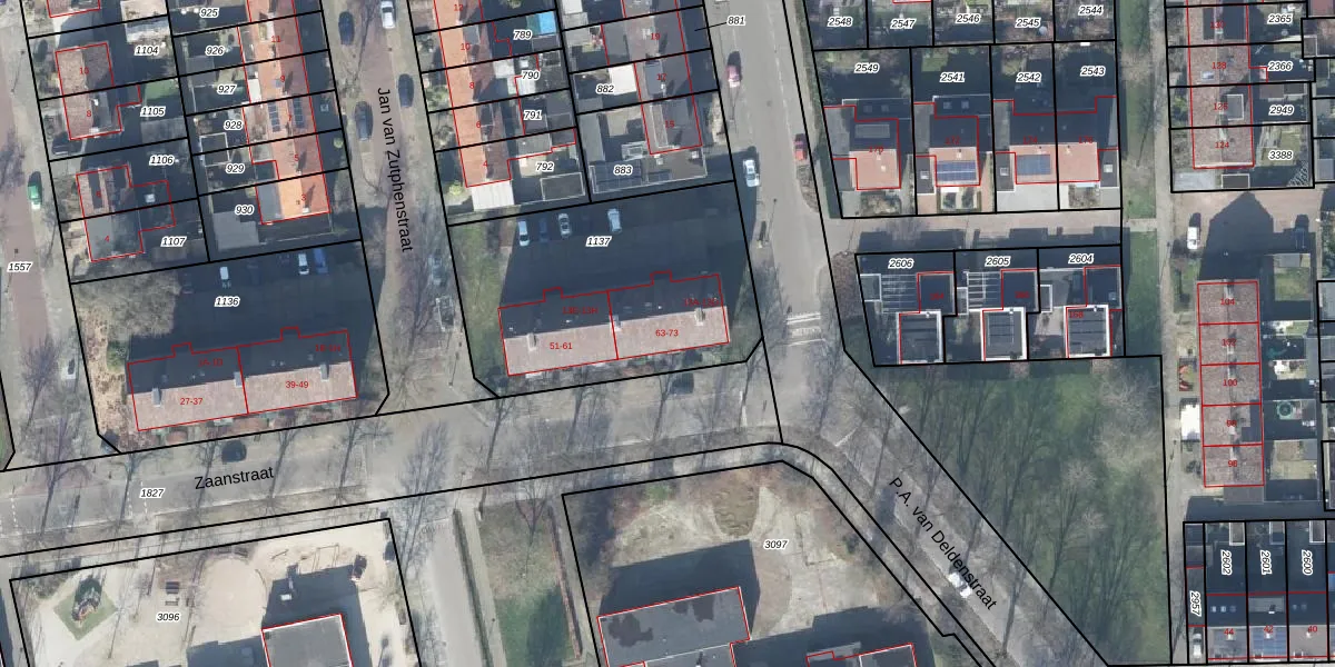Het perceel waarop P.A. van Deldenstraat 13-B staat heeft een oppervlakte van 1149 m². Dit is een zeer groot perceel. De perceeloppervlakte wordt geregistreerd door het Kadaster. Gedetailleerde informatie over de maten van dit perceel kunt u vinden in het rapport Kadastrale kaart met maatvoering van P.A. van Deldenstraat 13-B.