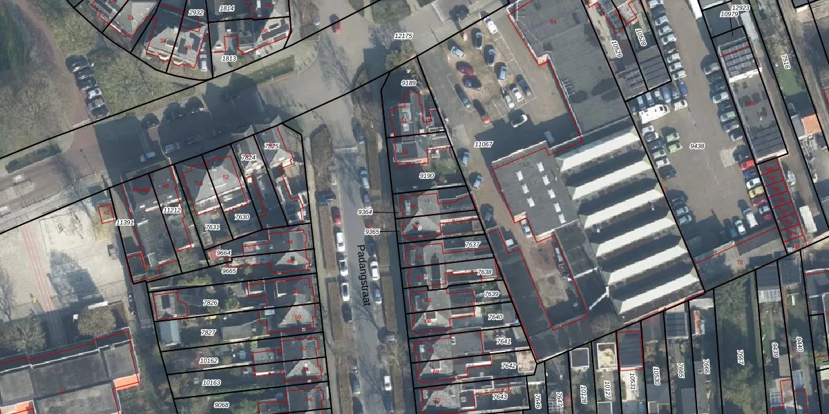Het perceel waarop Padangstraat 55 staat heeft een oppervlakte van 116 m². Dit is een middelgroot perceel. De perceeloppervlakte wordt geregistreerd door het Kadaster. Gedetailleerde informatie over de maten van dit perceel kunt u vinden in het rapport Kadastrale kaart met maatvoering van Padangstraat 55.