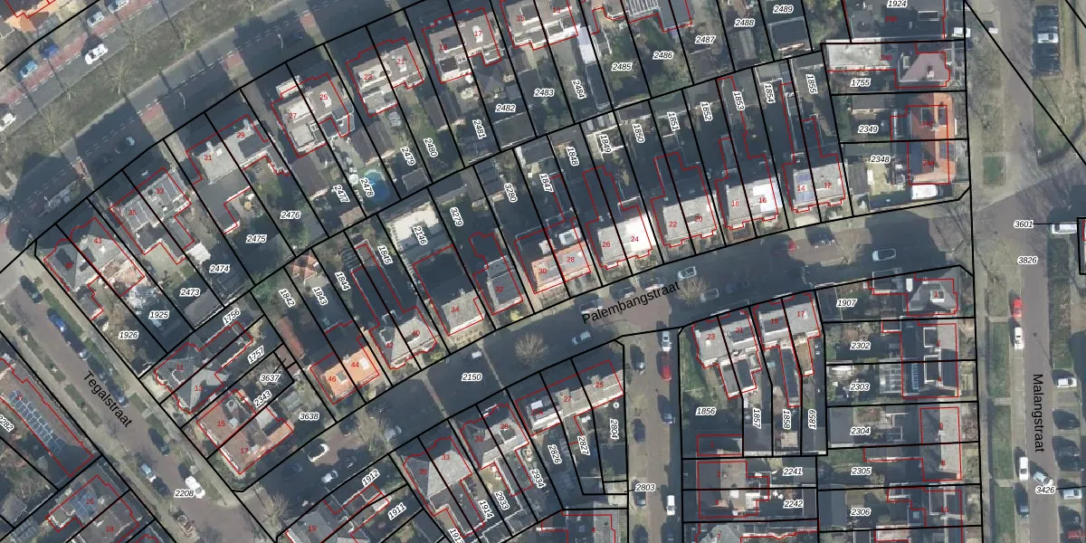 Het perceel waarop Palembangstraat 30 staat heeft een oppervlakte van 220 m². Dit is een middelgroot perceel. De perceeloppervlakte wordt geregistreerd door het Kadaster. Gedetailleerde informatie over de maten van dit perceel kunt u vinden in het rapport Kadastrale kaart met maatvoering van Palembangstraat 30.