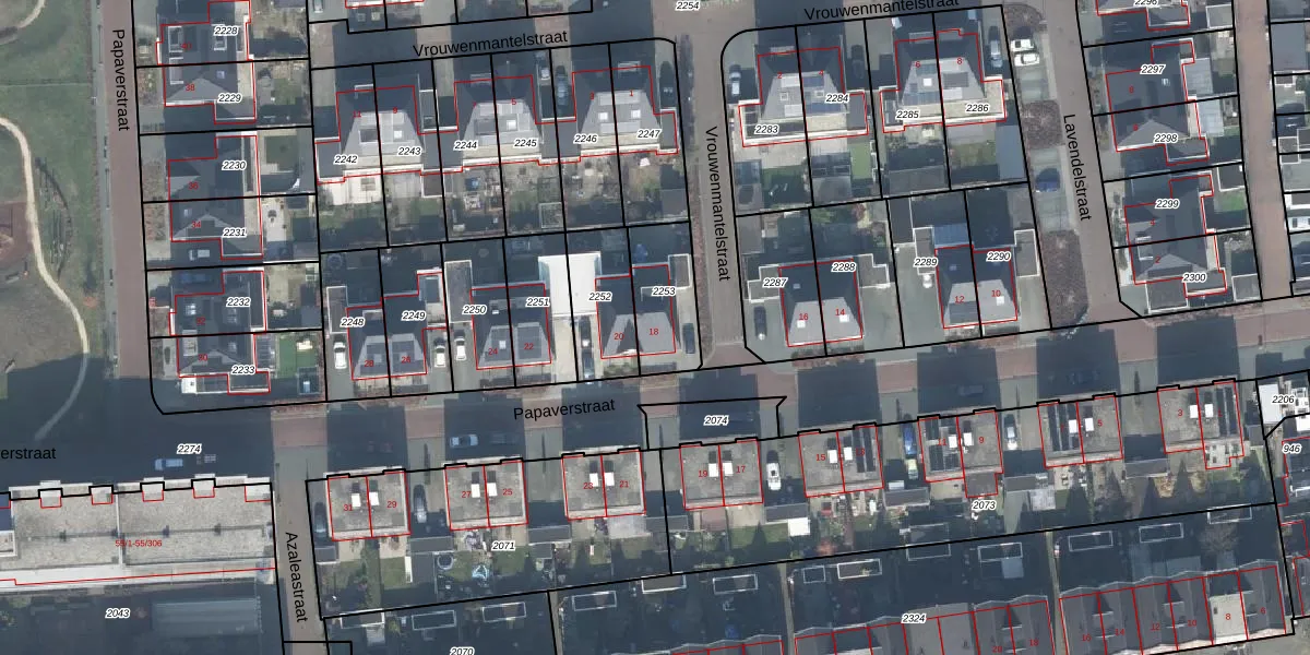 Gebruik de zoekbalk of klik op een perceel voor informatie over de adressen binnen dit perceel.