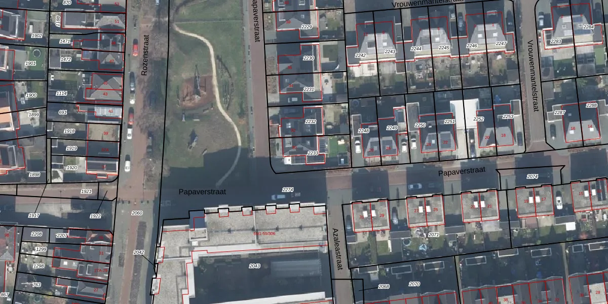 Gebruik de zoekbalk of klik op een perceel voor informatie over de adressen binnen dit perceel.