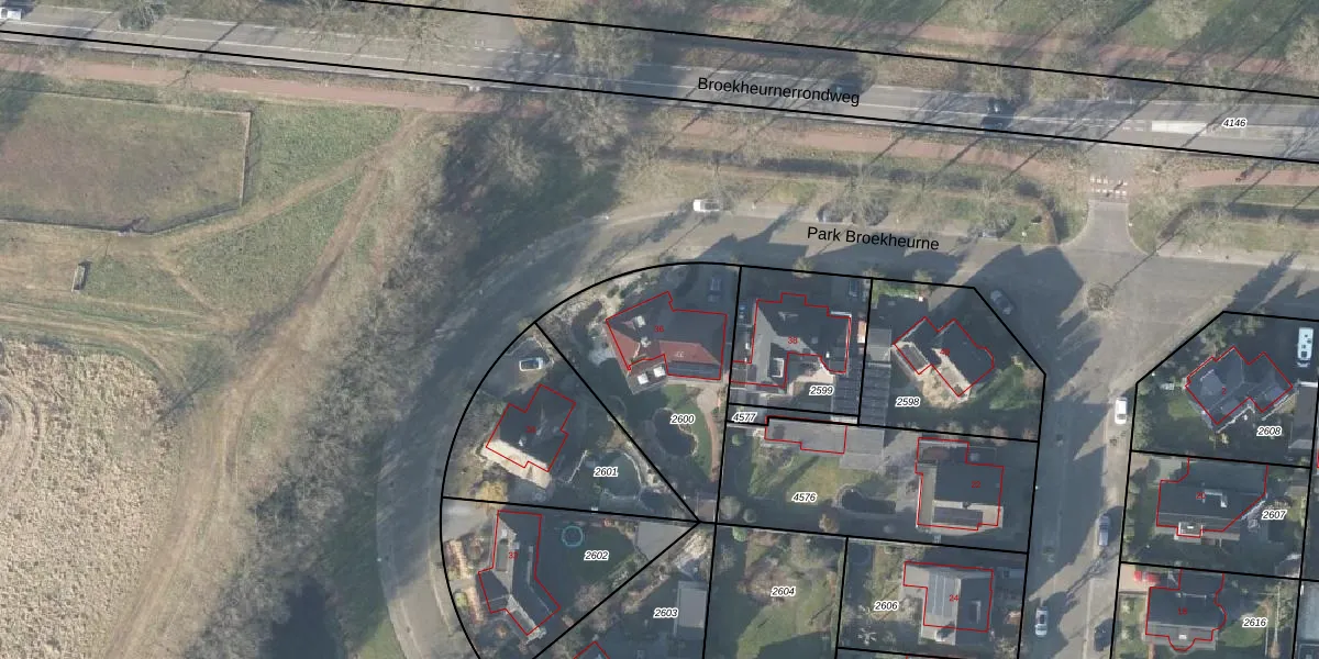 Park Broekheurne 36 is gelegen op kadastraal perceel LNK00U2600. Deze kadastrale aanduiding is uniek en wordt gebruikt door het Kadaster om eigendomsrechten en andere zakelijke rechten vast te leggen. Het perceel maakt onderdeel uit van de kadastrale gemeente Lonneker.