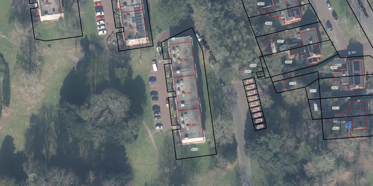 Het perceel waarop Park de Kotten 242 staat heeft een oppervlakte van 1390 m². Dit is een zeer groot perceel. De perceeloppervlakte wordt geregistreerd door het Kadaster. Gedetailleerde informatie over de maten van dit perceel kunt u vinden in het rapport Kadastrale kaart met maatvoering van Park de Kotten 242.