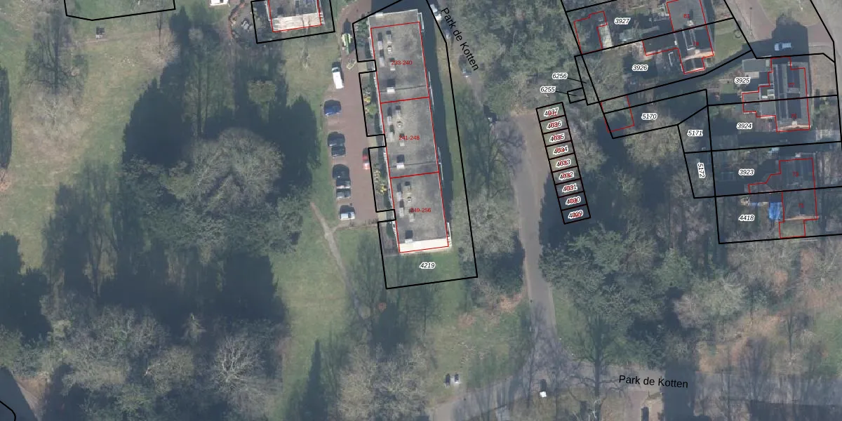 Het perceel waarop Park de Kotten 255 staat heeft een oppervlakte van 1390 m². Dit is een zeer groot perceel. De perceeloppervlakte wordt geregistreerd door het Kadaster. Gedetailleerde informatie over de maten van dit perceel kunt u vinden in het rapport Kadastrale kaart met maatvoering van Park de Kotten 255.