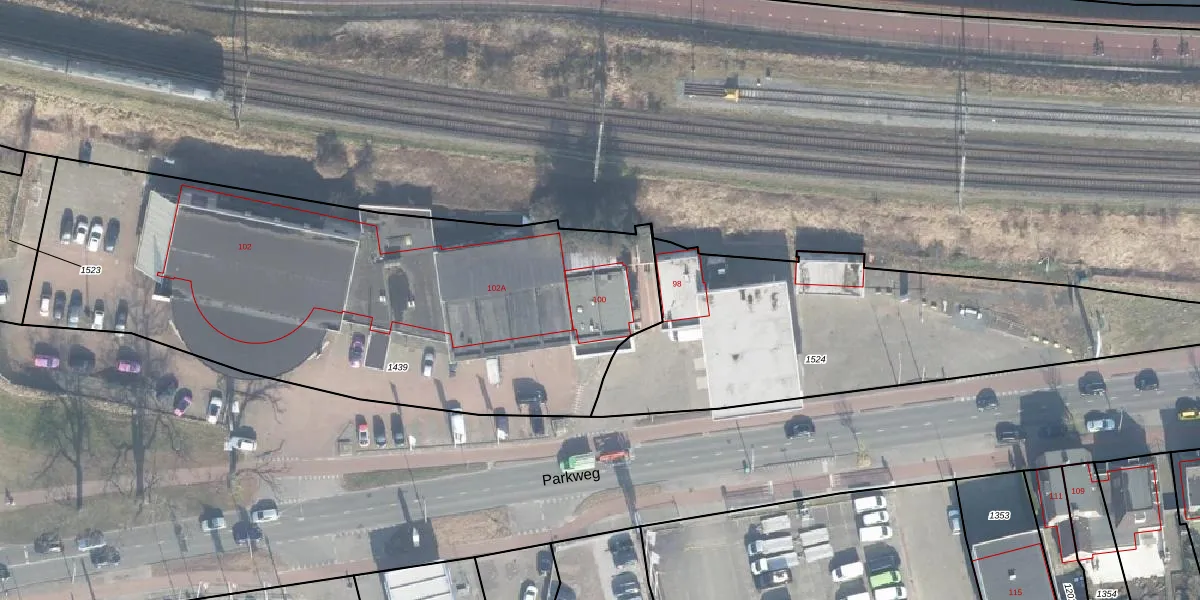 Parkweg 100 is gelegen op kadastraal perceel ESD00H1439. Deze kadastrale aanduiding is uniek en wordt gebruikt door het Kadaster om eigendomsrechten en andere zakelijke rechten vast te leggen. Het perceel maakt onderdeel uit van de kadastrale gemeente Enschede.