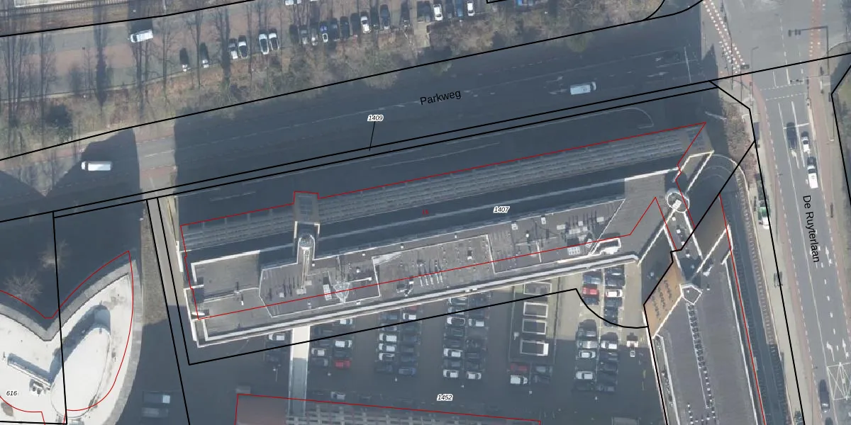 Het perceel waarop Parkweg 15 staat heeft een oppervlakte van 5496 m². Dit is een zeer groot perceel. De perceeloppervlakte wordt geregistreerd door het Kadaster. Gedetailleerde informatie over de maten van dit perceel kunt u vinden in het rapport Kadastrale kaart met maatvoering van Parkweg 15.