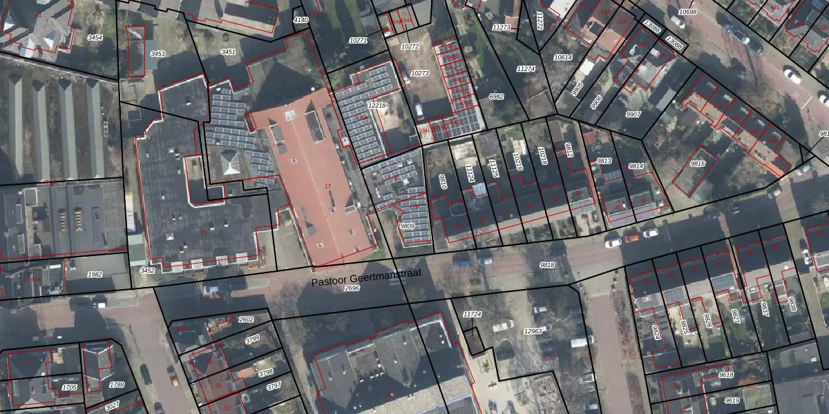 Pastoor Geertmanstraat 17-B is gelegen op kadastraal perceel LNK00O9809. Deze kadastrale aanduiding is uniek en wordt gebruikt door het Kadaster om eigendomsrechten en andere zakelijke rechten vast te leggen. Het perceel maakt onderdeel uit van de kadastrale gemeente Lonneker.