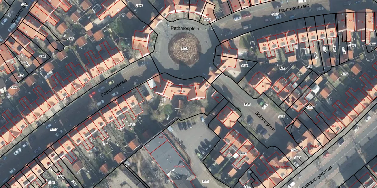 Het perceel waarop Pathmosplein 2 staat heeft een oppervlakte van 2427 m². Dit is een zeer groot perceel. De perceeloppervlakte wordt geregistreerd door het Kadaster. Gedetailleerde informatie over de maten van dit perceel kunt u vinden in het rapport Kadastrale kaart met maatvoering van Pathmosplein 2.