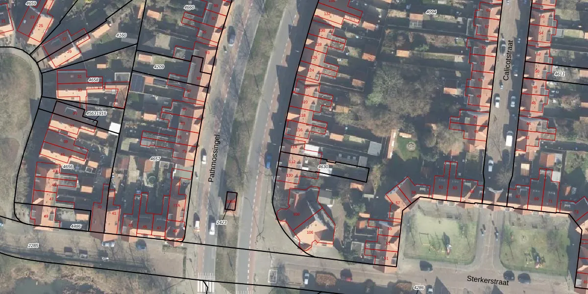 Pathmossingel 114 is gelegen op kadastraal perceel ESD00G4094. Deze kadastrale aanduiding is uniek en wordt gebruikt door het Kadaster om eigendomsrechten en andere zakelijke rechten vast te leggen. Het perceel maakt onderdeel uit van de kadastrale gemeente Enschede.