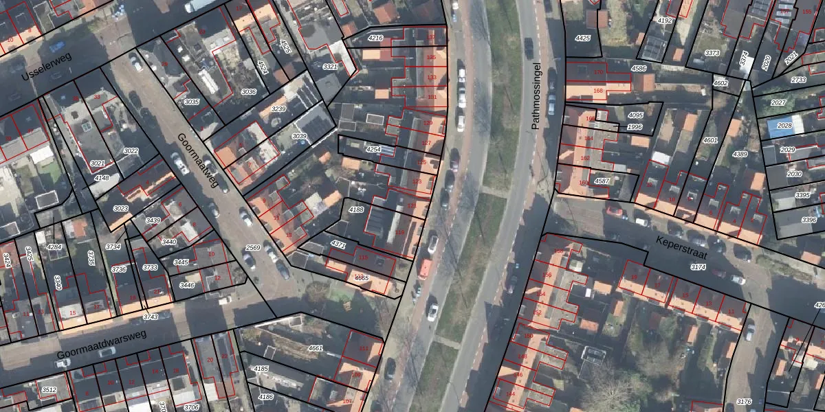 Pathmossingel 121 is gelegen op kadastraal perceel ESD00G4665. Deze kadastrale aanduiding is uniek en wordt gebruikt door het Kadaster om eigendomsrechten en andere zakelijke rechten vast te leggen. Het perceel maakt onderdeel uit van de kadastrale gemeente Enschede.