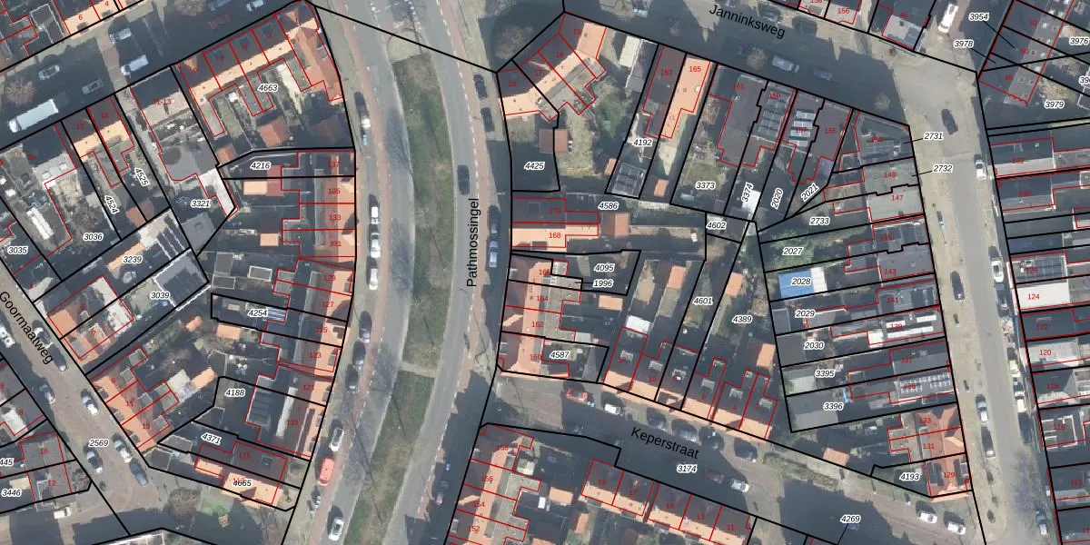 Gebruik de zoekbalk of klik op een perceel voor informatie over de adressen binnen dit perceel.