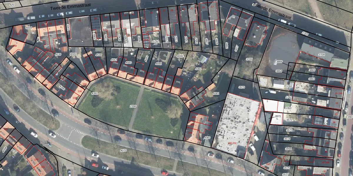 Het adres is gelegen op perceel 4382 in de sectie G en de kadastrale gemeente Enschede. De kadastrale aanduiding is aldus ESD00-G-4382. Het perceel is kleiner dan gemiddeld in Enschede. Het perceel is 545 m² groot, terwijl het gemiddelde ligt op 548,14 m². De grootste perceeloppervlakte in de kadastrale gemeente is 10,7 ha. De kleinste oppervlakte bedraagt 0 m². Er zijn 2 adressen aanwezig op het perceel. In de Basisregistratie Kadaster (BRK) werden de grenzen van het perceel geregistreerd op 08-03-2011.