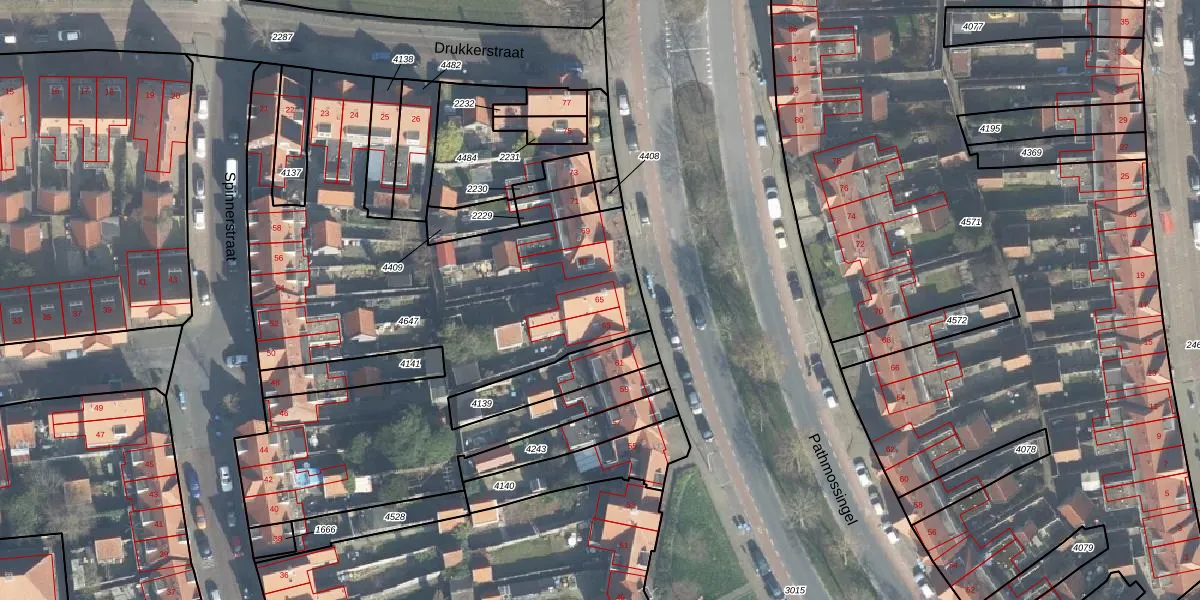 Het perceel waarop Pathmossingel 65 staat heeft een oppervlakte van 2768 m². Dit is een zeer groot perceel. De perceeloppervlakte wordt geregistreerd door het Kadaster. Gedetailleerde informatie over de maten van dit perceel kunt u vinden in het rapport Kadastrale kaart met maatvoering van Pathmossingel 65.